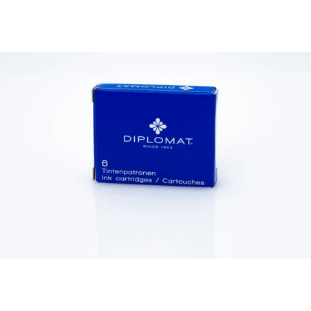 Assurez une écriture fluide et élégante avec cet étui de 6 cartouches d’encre Diplomat, spécialement conçu pour les stylos plume compatibles au format international standard. L’encre bleue offre un tracé régulier, net et confortable, idéal pour un usage quotidien comme pour l’écriture soignée.