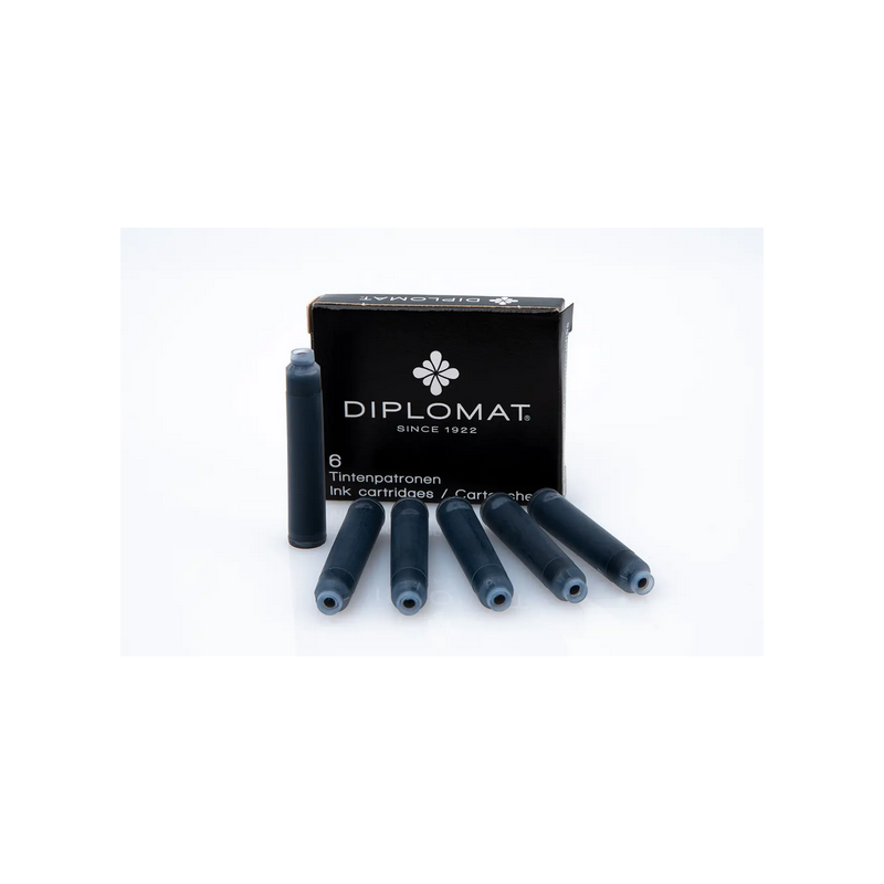 Profitez d’une écriture nette, élégante et professionnelle avec cet étui de 6 cartouches d’encre noire Diplomat. Compatibles avec les stylos plume utilisant le format international standard, ces cartouches offrent un débit régulier et une excellente intensité de couleur.